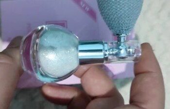 I was intrigued by the uniqueness of these products, and they didn't disappoint! While they're smaller than expected, the packaging is attractive and adds a nice touch to my vanity. It takes some practice to achieve the desired spray effect, but even if you apply too much, blending it out with a brush or sponge is effortless. I also enjoy using it as an eyeshadow to add sparkle and highlight. The soft baby powder scent is delightful and fades gradually.