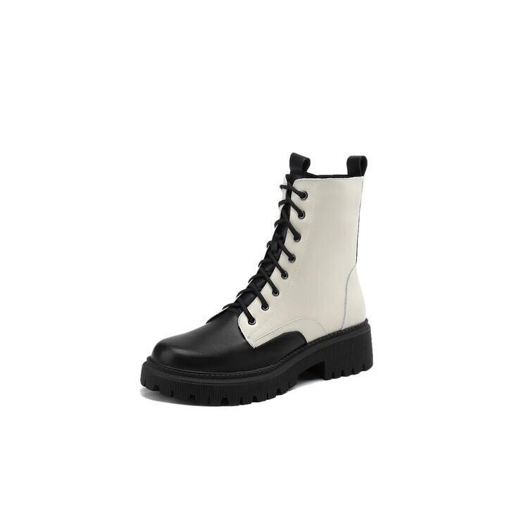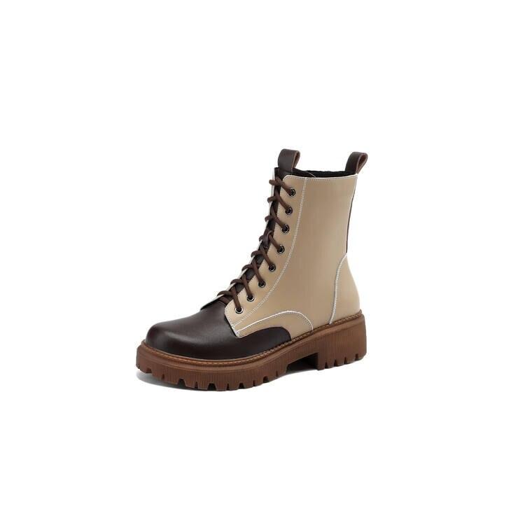 Aside from their stylish design and superior materials, these boots stand out for their comfort and durability. The zipper closure ensures a snug fit, while the platform height adds extra support without sacrificing style. The blend of split leather materials and the unique mixed color pattern make each pair a statement piece that’s as unique as you are.