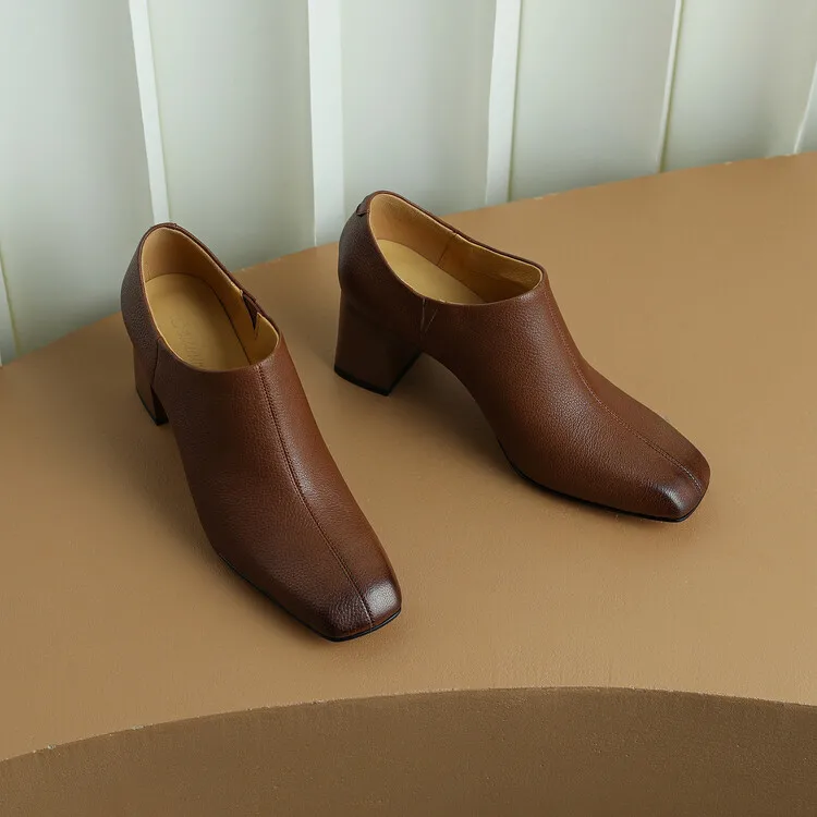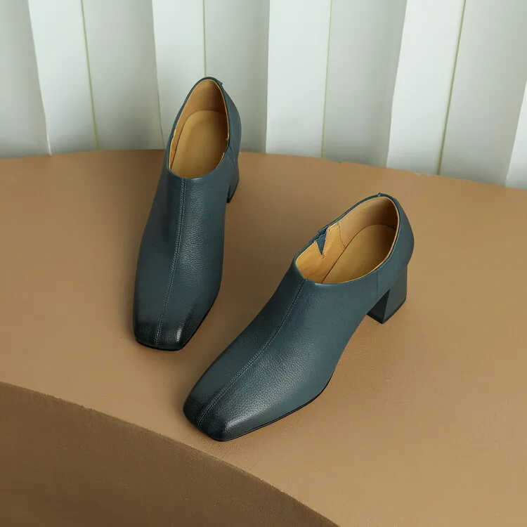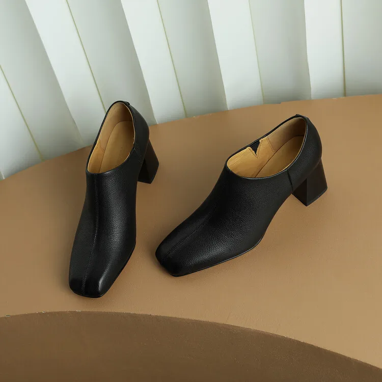 Autumn Square Toe Sheepskin Ankle Boots with Chunky Heel