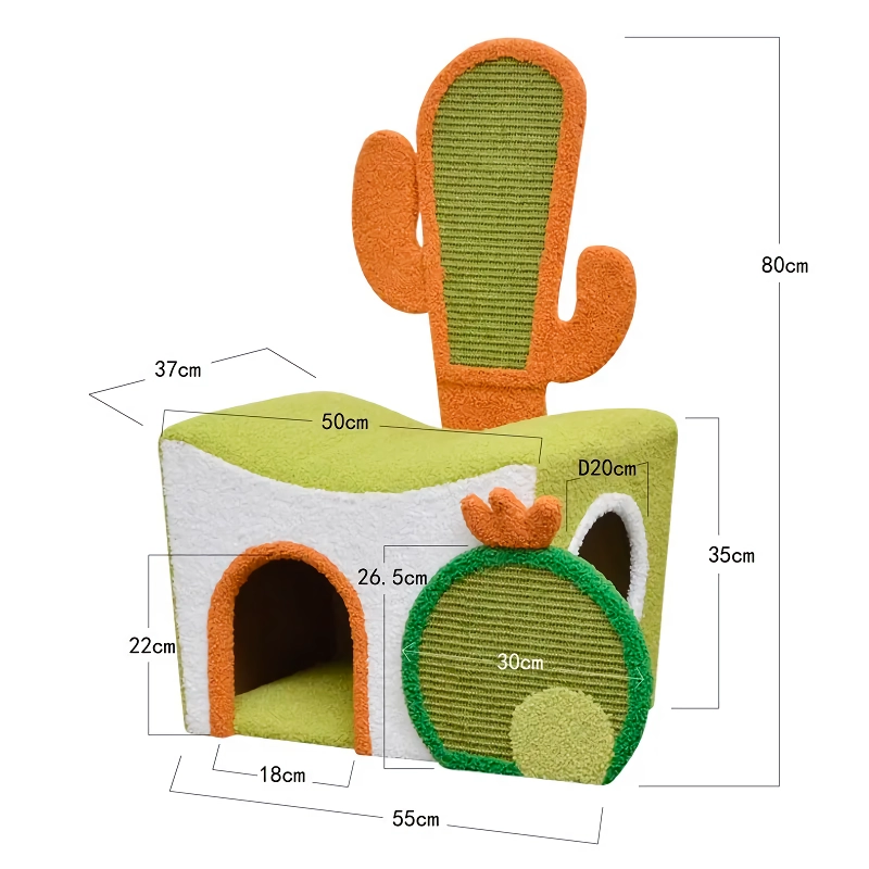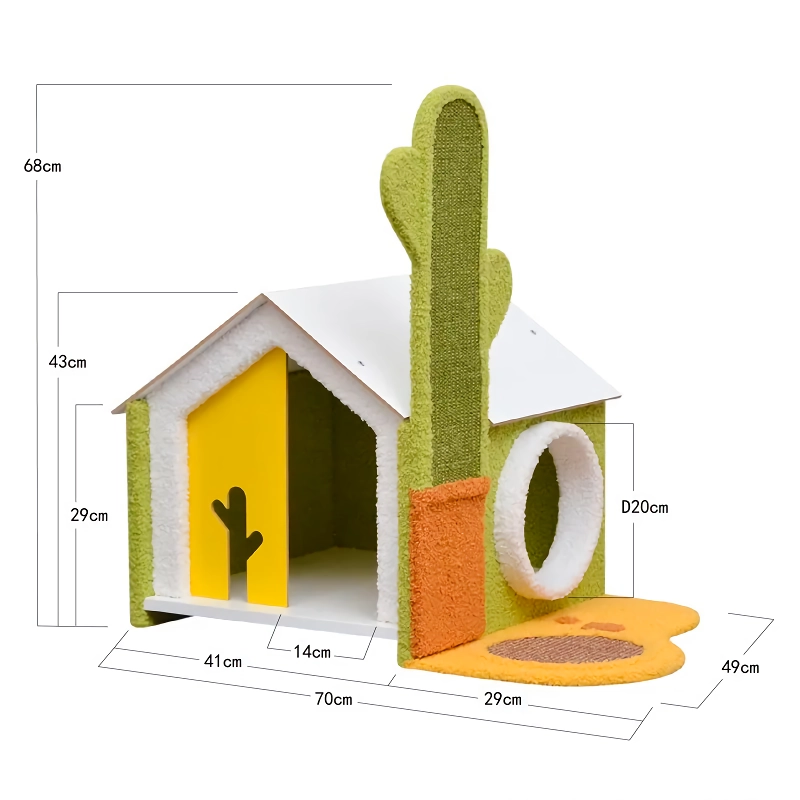 Cats have a natural urge to scratch, climb, and explore. Our Cactus Climbing Cat Toy and Scratching House perfectly caters to these instincts, providing your cat with a safe and engaging environment to play. The sturdy wood construction ensures stability as your cat leaps and climbs, while the cactus design offers multiple scratching surfaces to keep their claws healthy and your furniture safe.