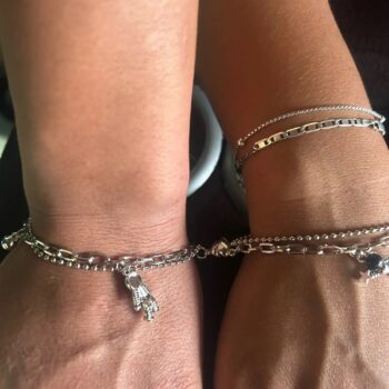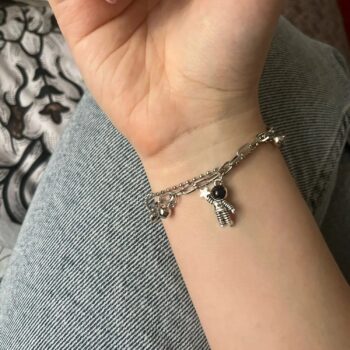 This bracelet is a delightful fusion of cosmic and romantic themes, making it a standout accessory in my collection; the astronaut charm symbolizes adventure and curiosity, while the heart charm adds a touch of sweetness and love. The double-layer design adds visual interest and depth, making it a versatile piece that can be styled in various ways.
