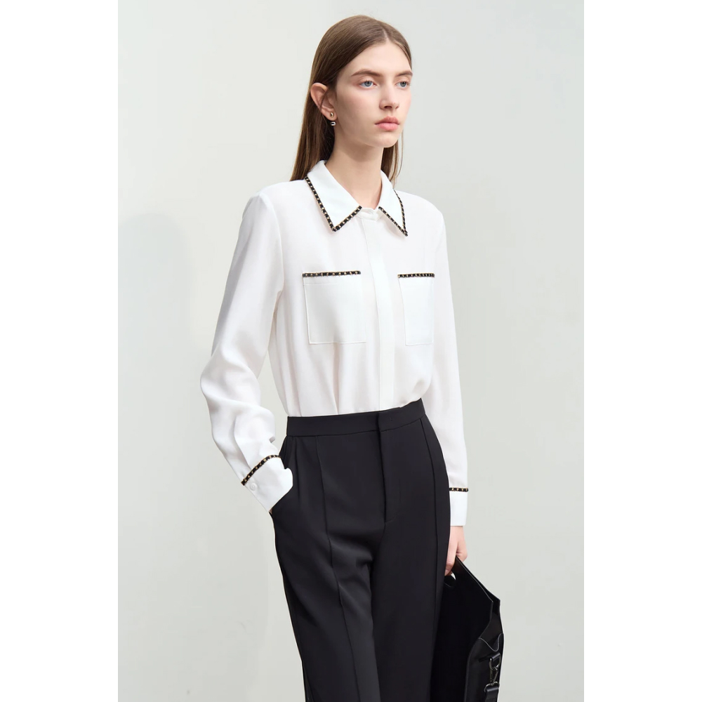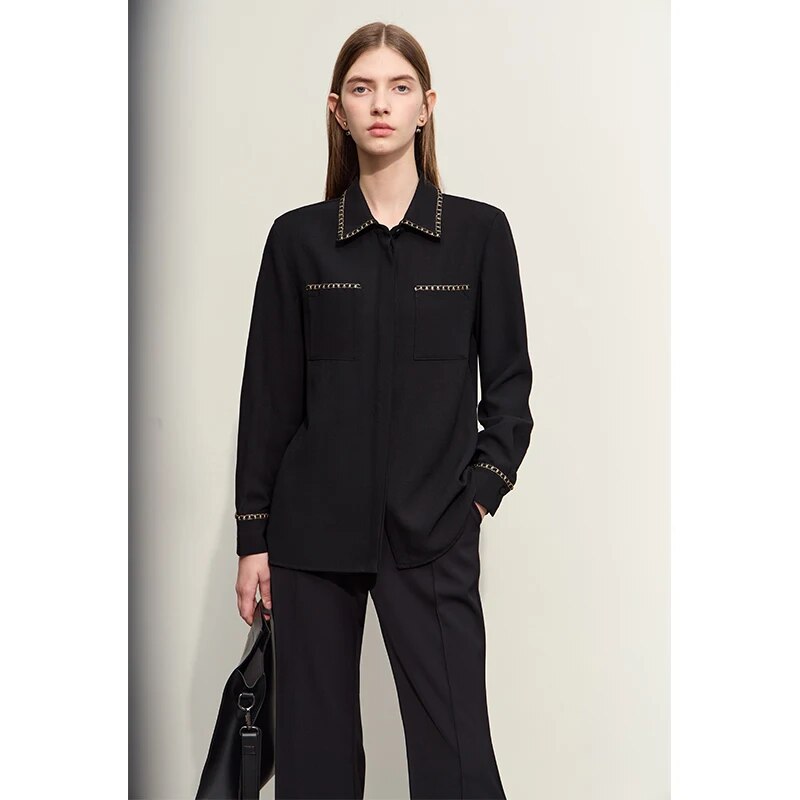 Whether you’re heading to the office, attending a business meeting, or enjoying a casual outing with friends, this blouse adapts to your needs. Its midweight thickness is ideal for the changing weather, providing enough warmth without overheating. The non-stretch fabric keeps the blouse looking crisp and professional all day long.
