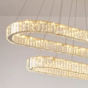 Bring a touch of sophistication to any room with our Contemporary LED Crystal Ceiling Pendant. Designed for modern living, this stylish fixture combines the allure of sparkling crystals with the sleekness of chrome, casting a warm and inviting glow in your dining room, kitchen, or bedroom. Its unique oval ring shape is not just an illumination source, it’s a statement piece that complements your home decor.