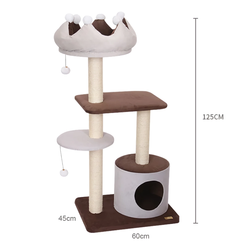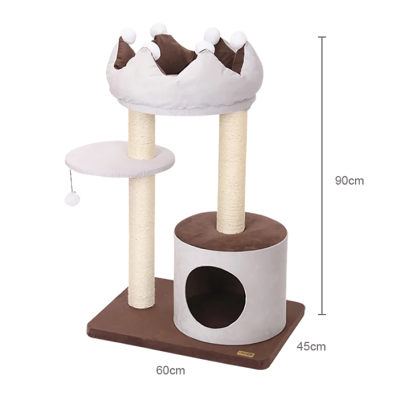 Our Cat Climbing Tree & Cozy Nest stands out with its eye-catching design and cat-friendly structure. It includes sisal scratching posts that cater to your cat’s natural scratching instincts while protecting your furniture. The integrated cozy nest atop provides the perfect spot for lounging and surveying their kingdom. The sturdy base ensures stability, no matter how energetically your cat leaps onto it.