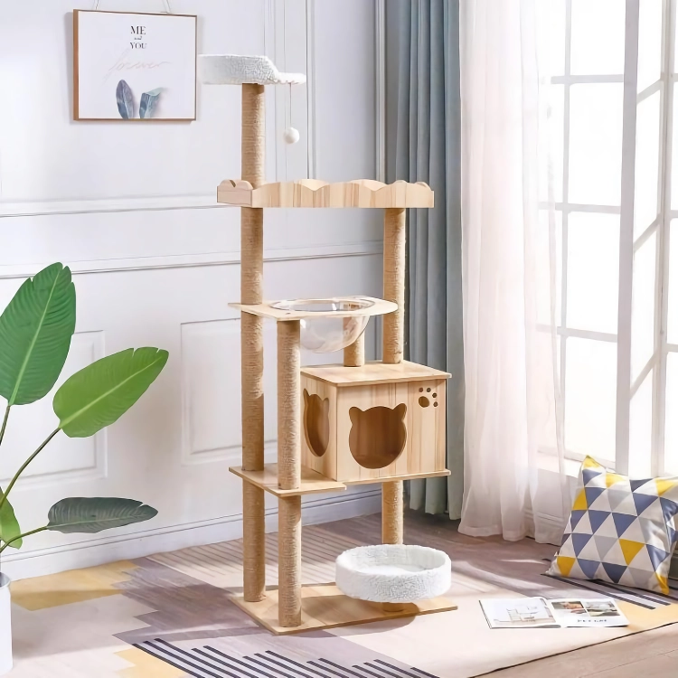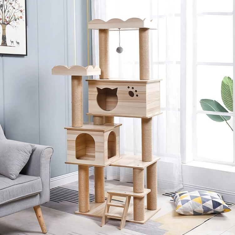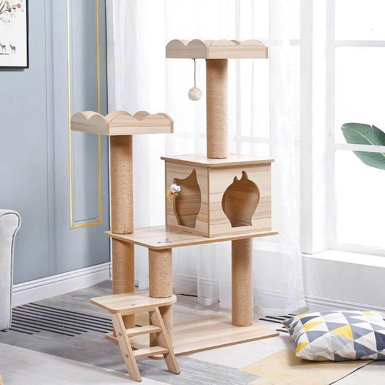 Unlike standard cat trees, our Deluxe Wooden Multi-Level Cat Climbing Tower offers a blend of functionality, durability, and style. The combination of natural materials, engaging toys, and a multi-tiered structure provides your cat with a comprehensive play and rest area that looks great in your home. It’s not just a cat accessory—it’s a piece of furniture that caters to your pet’s needs while complementing your interior decor.