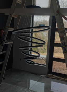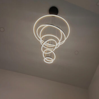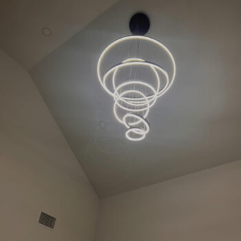 Although installing this light fixture was a bit challenging for two people, taking us around two hours, the end result was spectacular! Initially, we had the rings positioned incorrectly and had to restart, but eventually, we figured it out. The ability to adjust the rings easily and the functionality of the remote, which allows for changing light color and brightness from a distance, have garnered many compliments.