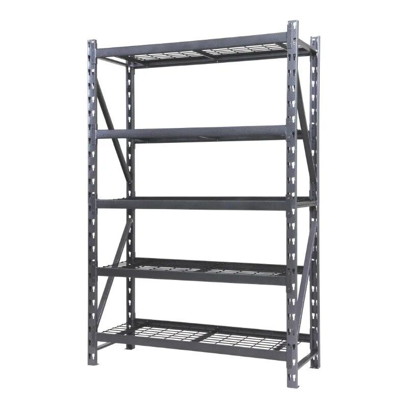 Elevate the organization and aesthetics of your garage, basement, pantry, or any storage space with our Heavy Duty 5-Shelf Metal Rack. Boasting a robust construction and a sleek textured gray finish, this shelving unit is not just a functional necessity but a style statement too. Its sturdy design, combined with a rust-resistant powder coating, ensures longevity and resilience in various environments, from the damp corners of a basement to the hustle of a busy garage.