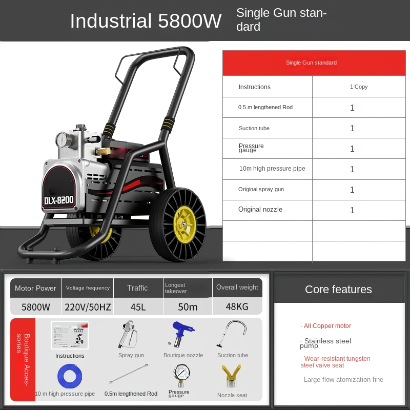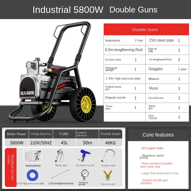 Introducing our latest innovation in painting technology – the High-Power Electric Airless Paint Sprayer, a game-changer for both professional painters and DIY enthusiasts. This state-of-the-art tool is designed to deliver a flawless finish with incredible efficiency, saving you time and effort on every project.
