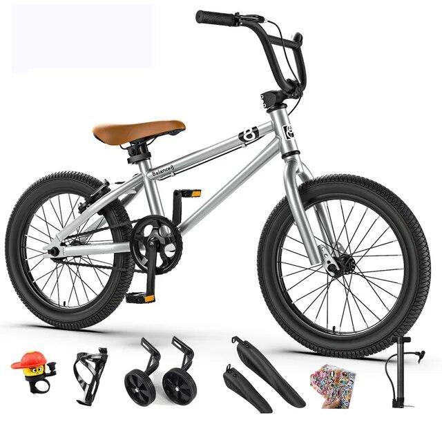 Our Kids’ Mountain Bike stands out for its innovative design and child-friendly features. The bike’s adjustable height ensures it grows with your child, eliminating the need for frequent replacements. Its high carbon steel frame and aluminum components offer a mix of durability and lightweight performance, ideal for young adventurers. The carbon fibre rims add to the bike’s longevity, while the double V brake system ensures your child’s safety on diverse terrains. With training wheels included, even beginners can embark on their cycling journey with confidence.