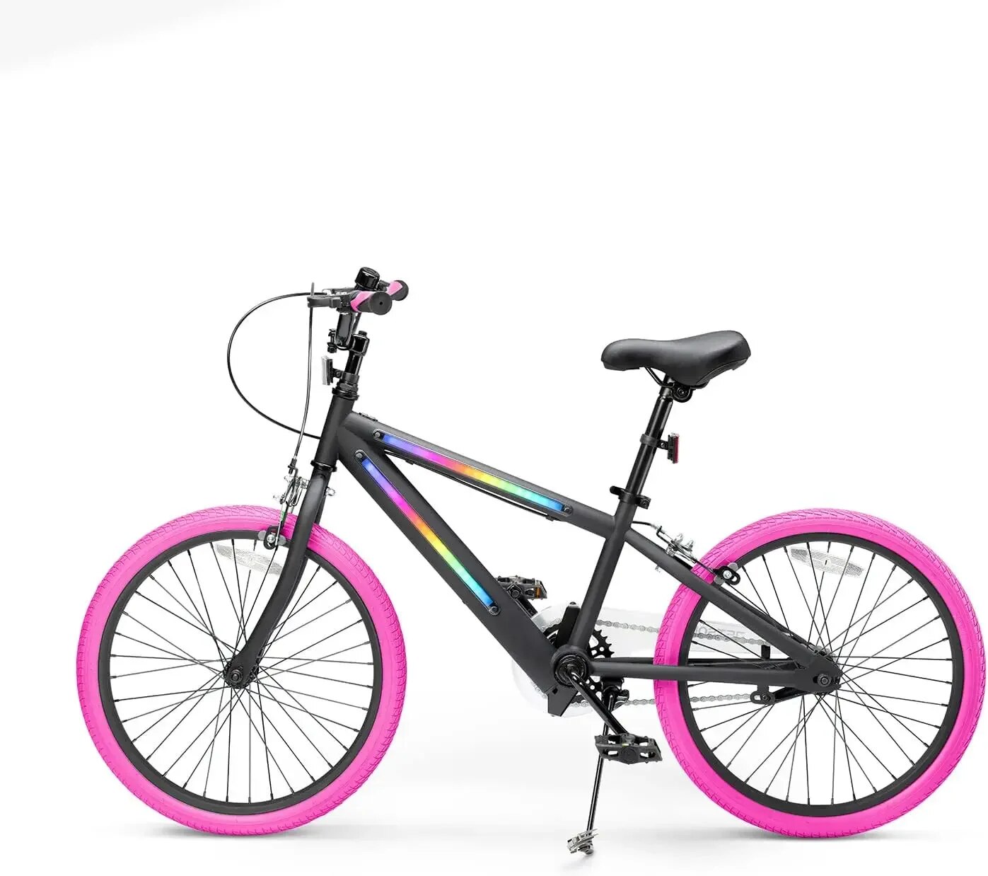 Our Light-Up Bike is not just another kids’ bike. It’s a beacon of joy, designed to make every ride magical. The LED frame not only enhances visibility for safer evening rides but also adds a cool factor that kids love. With three different light modes, it’s easy to switch up the look and feel of the bike for various occasions. The robust magnesium alloy frame and aluminum alloy components promise durability and a light ride, making it easier for kids to handle and enjoy their adventures.