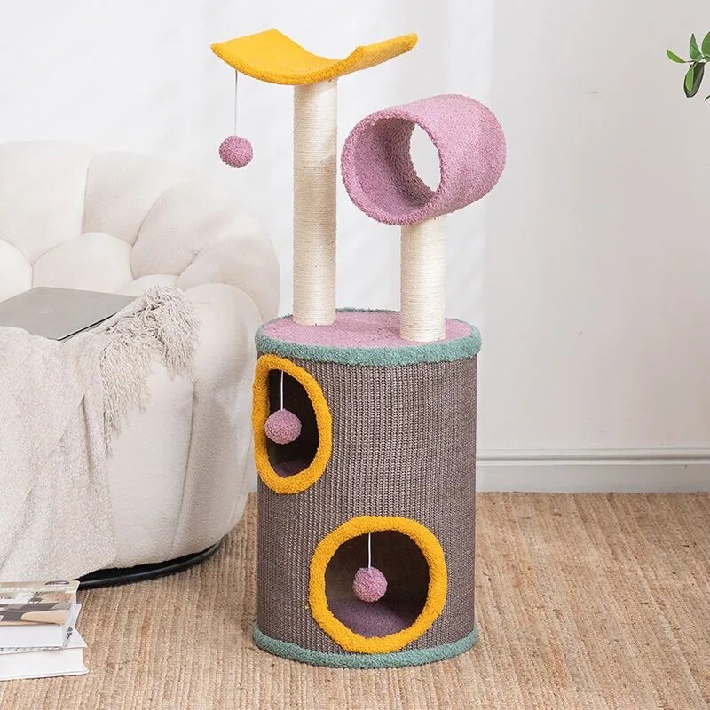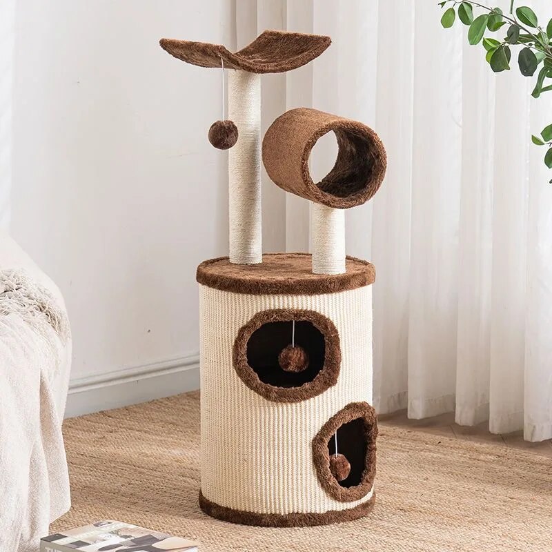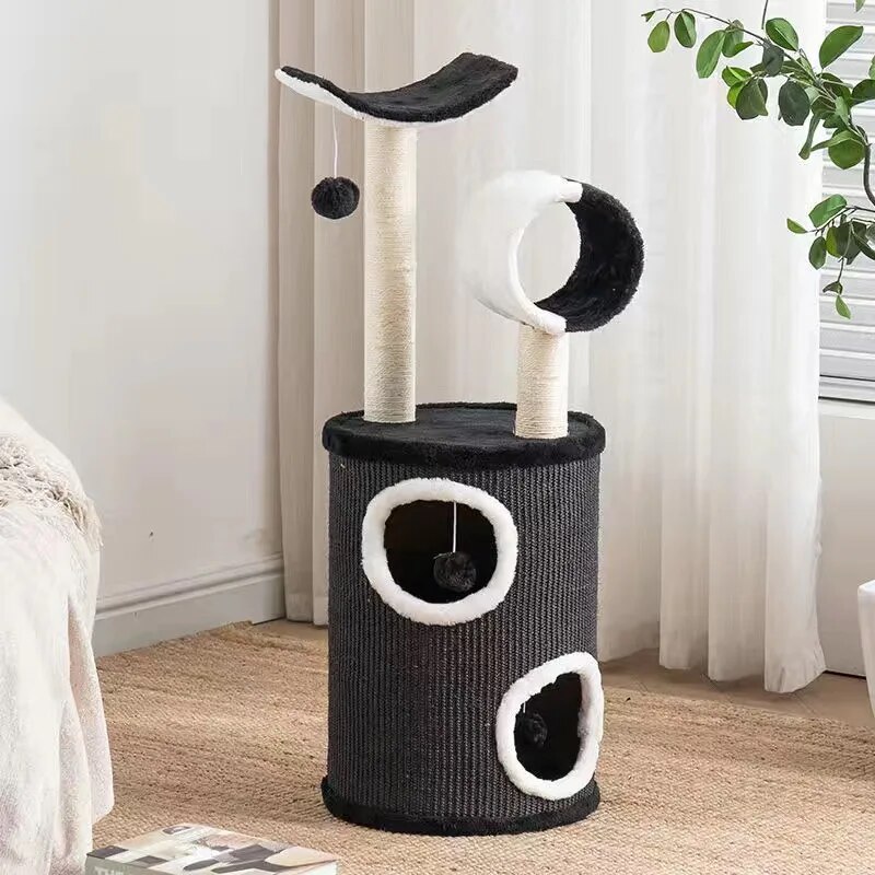 Our Cat Tree House is more than just a piece of pet furniture; it’s a comprehensive entertainment and relaxation center designed specifically for your cat’s needs. Featuring sturdy cloth construction and wrapped in soft, inviting fabric, this cat villa promises durability and comfort. The three-layer design offers ample space for climbing, while the sisal hemp scratching posts cater to your cat’s natural claw sharpening needs. Integrated with playful toys, this cat tree house ensures your cat’s entertainment is never-ending.