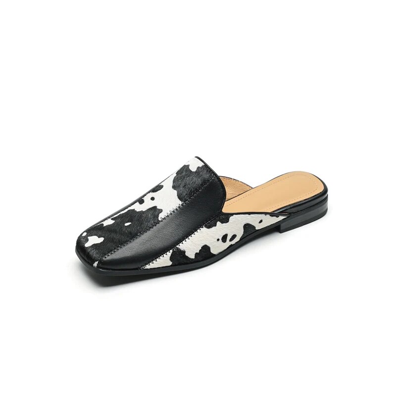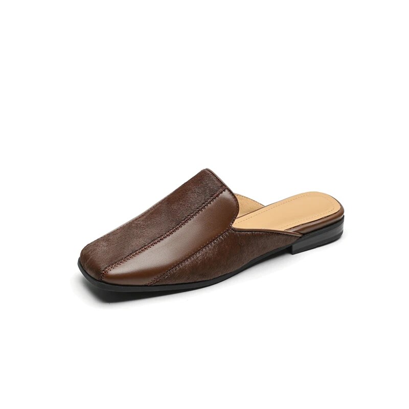 Our mules are crafted from genuine cow leather, ensuring not only supreme quality but also durability. The unique horse hair texture adds an exotic touch, distinguishing these slippers from your ordinary footwear. With a modest heel height of 2.5cm, they promise day-long comfort without compromising on style. The square heel design not only enhances stability but also contributes to the overall retro aesthetic. Designed to fit true to size, these slippers cater to all with a promise of an impeccable fit.