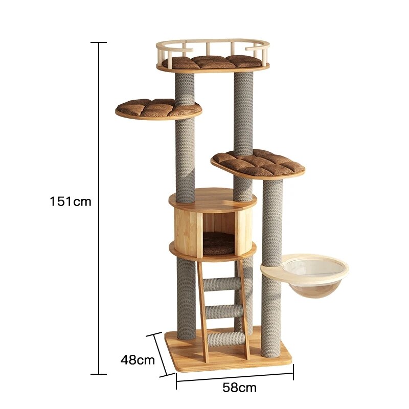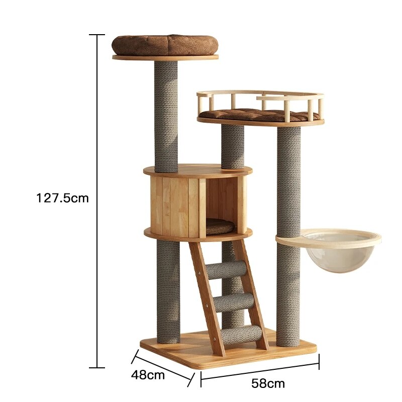 This isn’t just any cat tree. Our commitment to quality, combined with thoughtful design, makes our Climbing Tower a standout. The integration of a litter capsule within a luxurious solid wood structure is a game-changer, offering convenience and cleanliness alongside aesthetic appeal. Crafted in Guangdong and designed for the discerning pet owner, it reflects a deep understanding of feline needs and owner preferences.