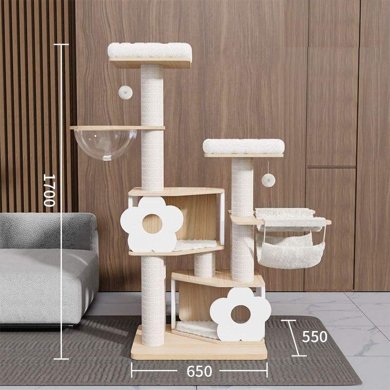 Luxury Solid Wood Cat Tower – Multi-Level Climbing Frame & Space Capsule Nest