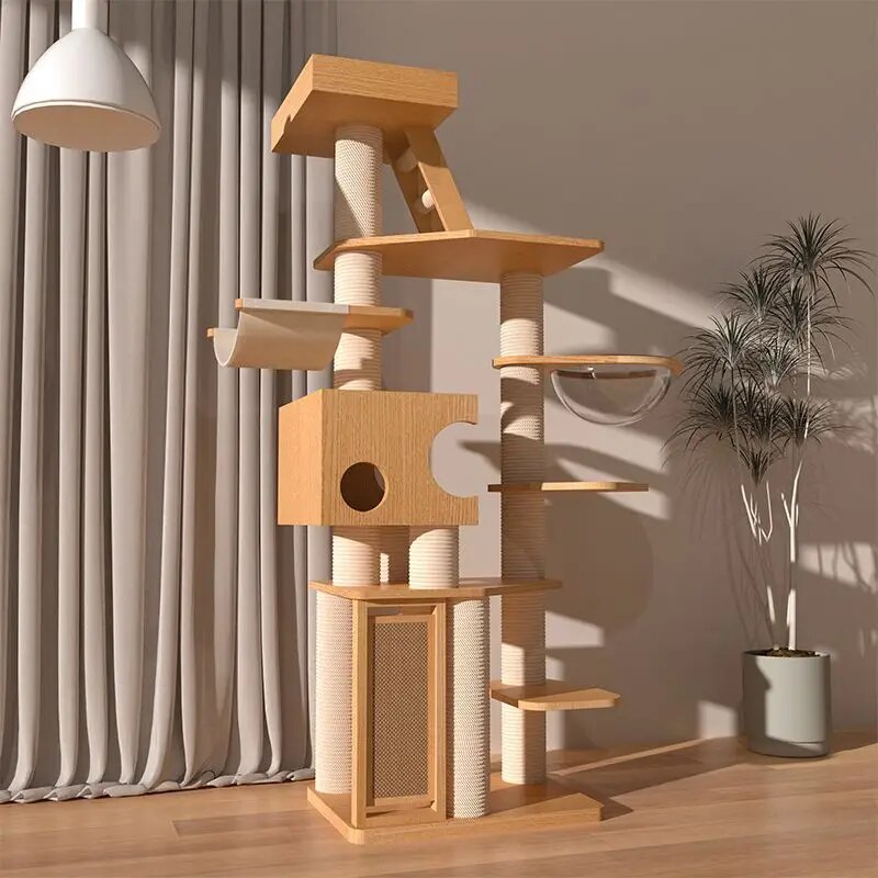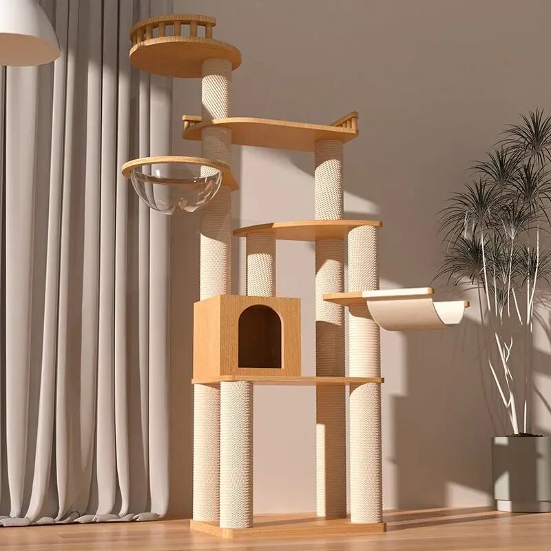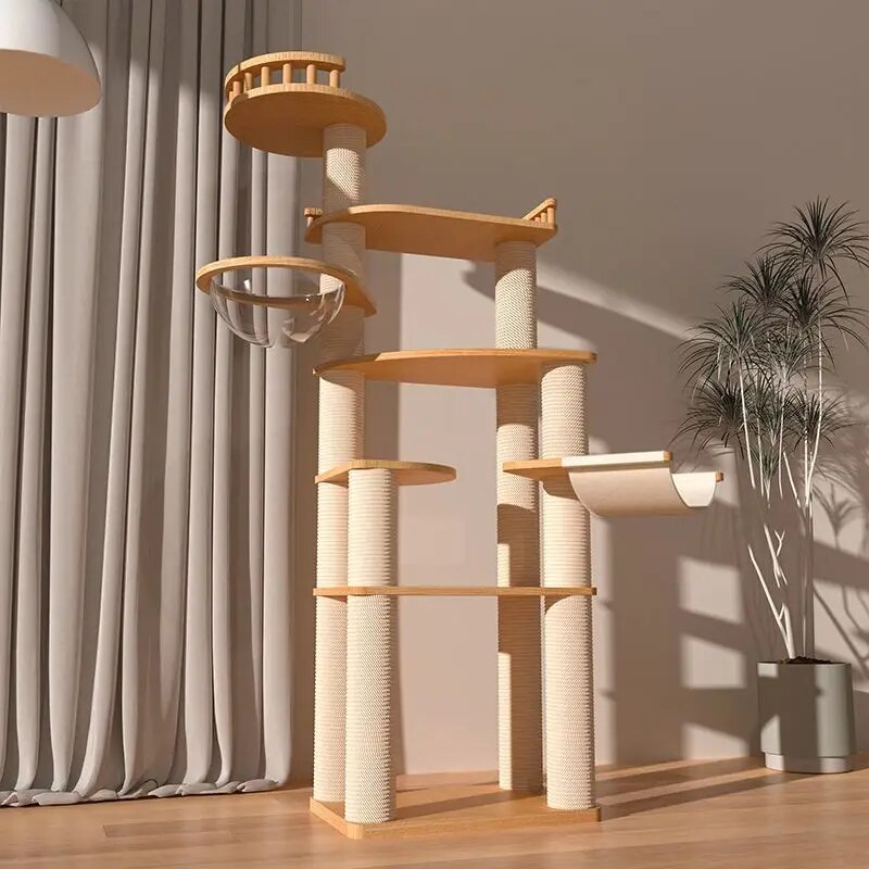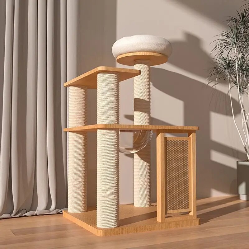 What sets our cat tree apart is the combination of luxury, durability, and design. Unlike other cat trees, ours is crafted with attention to detail and a focus on sustainability, ensuring that it not only looks beautiful in your home but also stands the test of time. The use of natural sisal and solid wood makes it a healthier choice for your pet, free from harmful chemicals and synthetic materials.