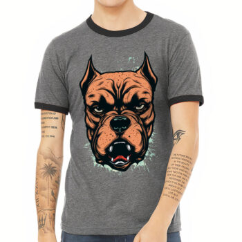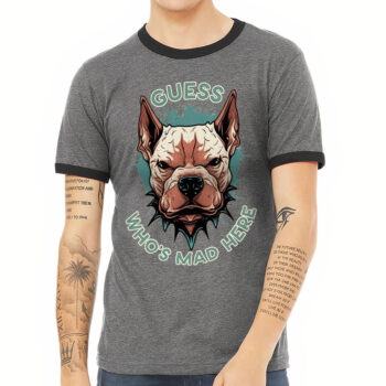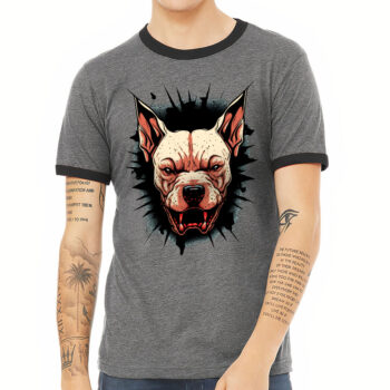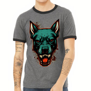 Angry Dog Ringer T-Shirt – Graphic T-Shirt – Cartoon Ringer Tee