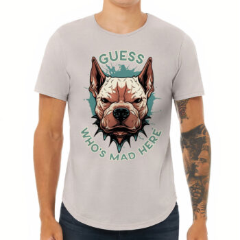 Guess Who’s Mad Here Curved Hem T-Shirt – Art T-Shirt – Funny Curved Hem Tee