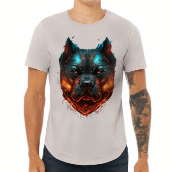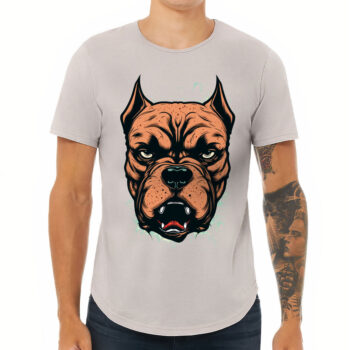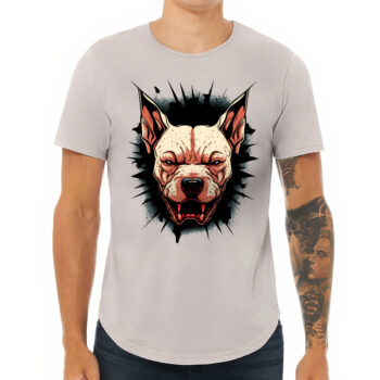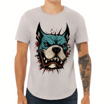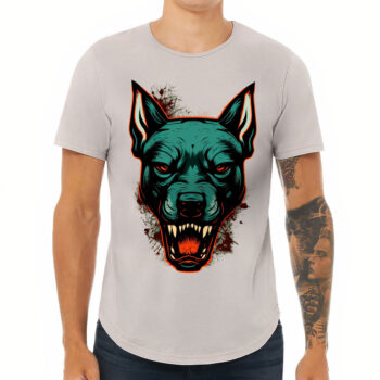 Angry Dog Curved Hem T-Shirt – Graphic T-Shirt – Cartoon Curved Hem Tee