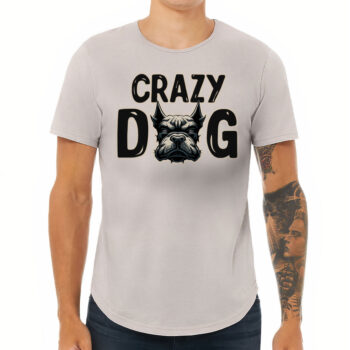 Crazy Dog Curved Hem T-Shirt – Cool T-Shirt – Dog Art Curved Hem Tee