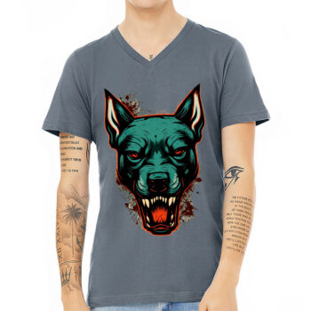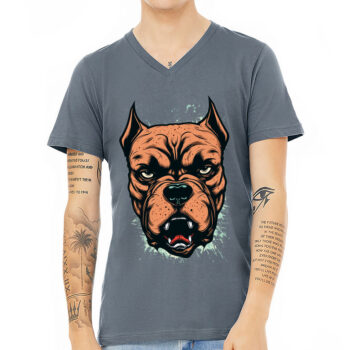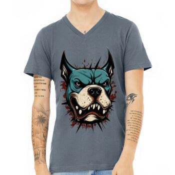 Angry Dog V-Neck T-Shirt – Graphic T-Shirt – Cartoon V-Neck Tee