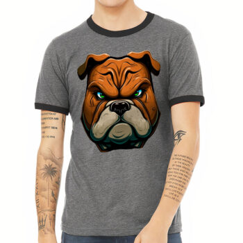 Bulldog Print Ringer T-Shirt – Cartoon T-Shirt – Cool Ringer Tee