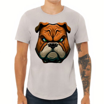 Bulldog Print Curved Hem T-Shirt – Cartoon T-Shirt – Cool Curved Hem Tee