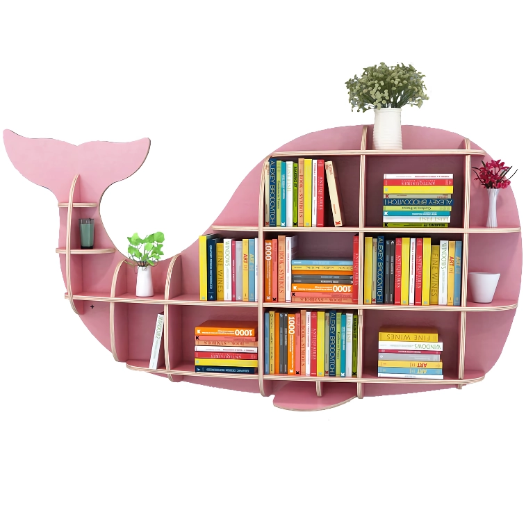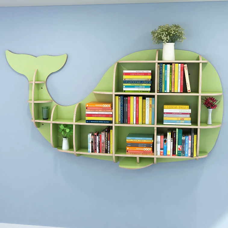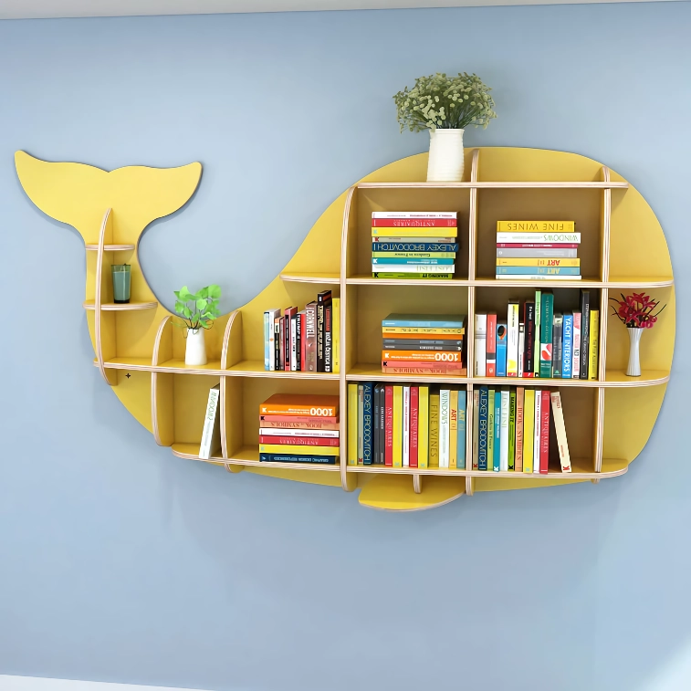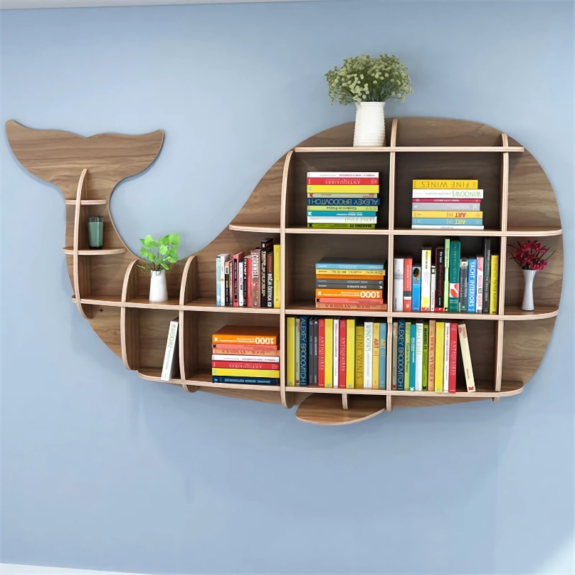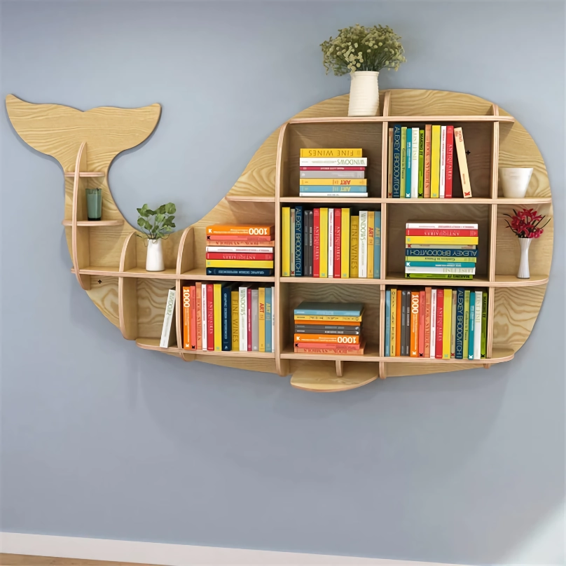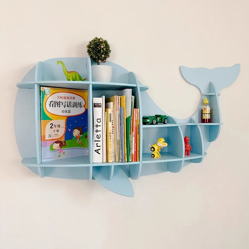 Minimalist Nordic Cute Whale Wall-Mounted Bookshelf for Kids Room & Living Room