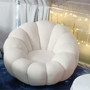 Introducing our Modern Minimalist White Velvet Lazy Sofa, a perfect blend of style and comfort for your living space. Designed to add a touch of elegance and coziness to any room, this chair is not just a piece of furniture, but a statement of modern living. Its unique pumpkin shape and plush lamb cashmere fabric invite you to relax and unwind in its welcoming embrace.