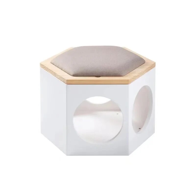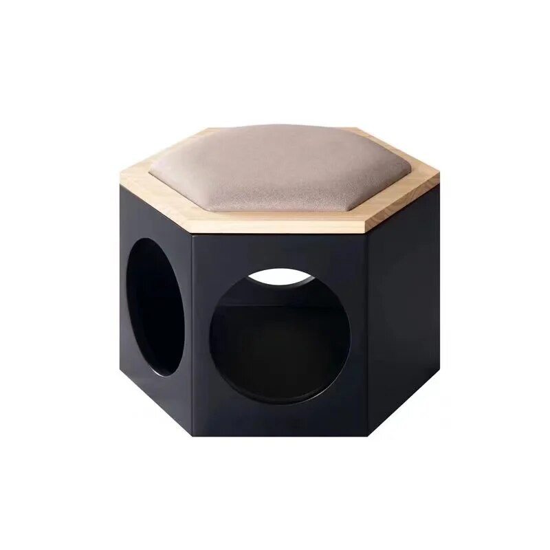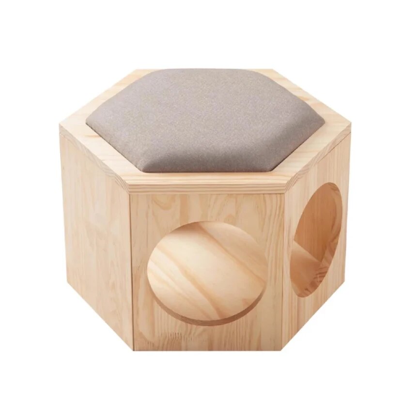 Our product stands out for its dual-purpose design, serving both as a comfortable cat house and a chic tea table or shoe stool. Made from high-quality wood and originating from Guangdong, this piece embodies durability and elegance. Its detachable and washable feature ensures hygiene and ease of care, making it a perfect choice for any season. Whether you’re enjoying a warm cup of tea or looking for a convenient place to store your shoes, this cat villa has got you covered, all while providing a private and snug retreat for your pet.