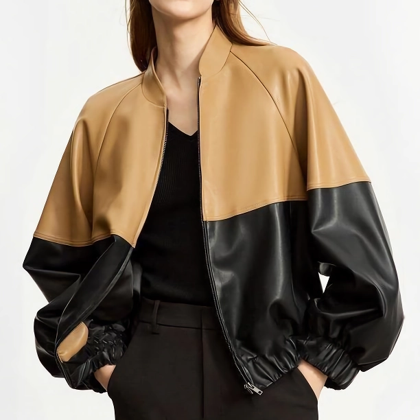 Autumn Baseball Leather Jacket for Women – Loose Fit Long Sleeve Coat