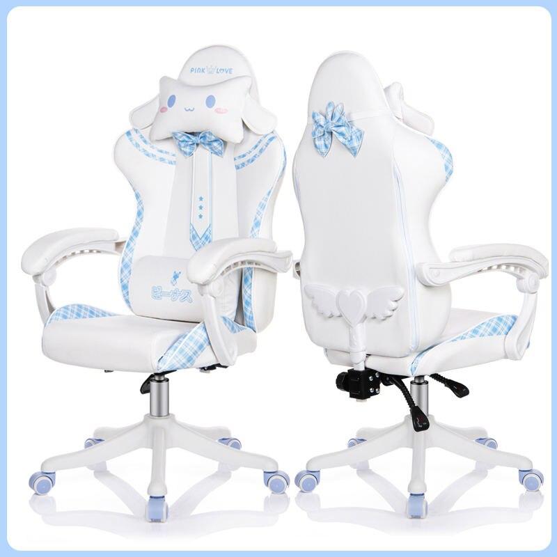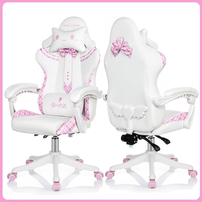 Pink Cute Gaming Chair with Bow Tie Design & 360° Swivel