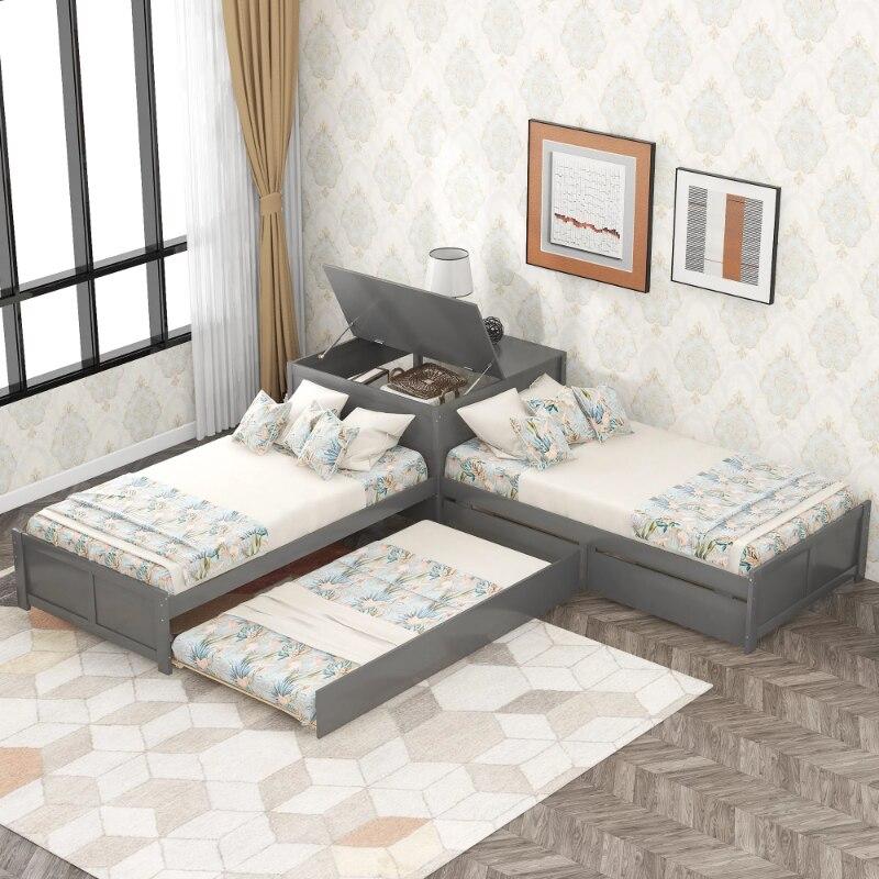 Adjustable Height Solid Wood Bunk Bed with Slide and Storage