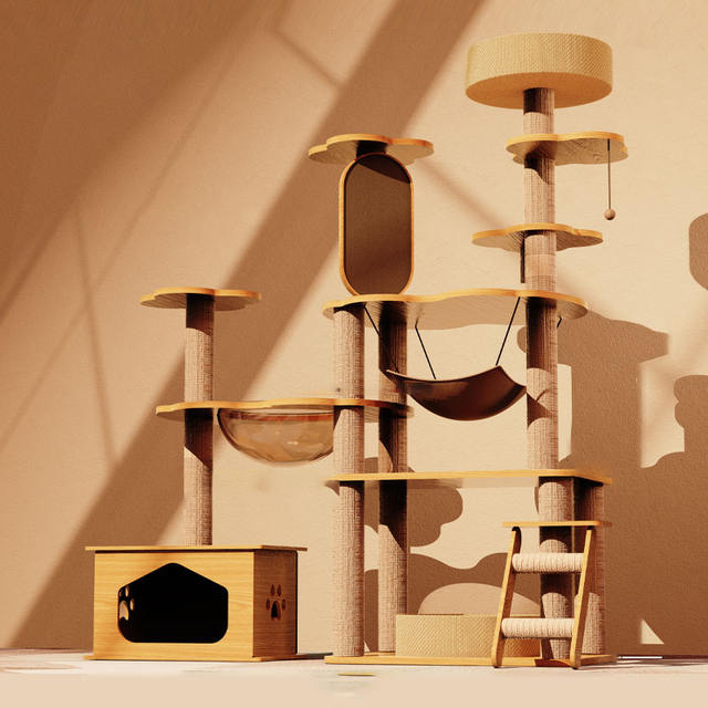 Deluxe Wood Cat Tree & Castle with Rainbow Bridge