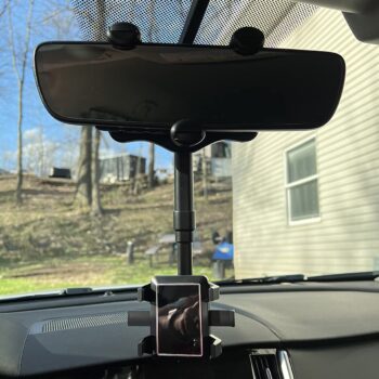 Functional, easy to set up and not too bulky - doesn't impair my view at all! Handles large phones like a pro.