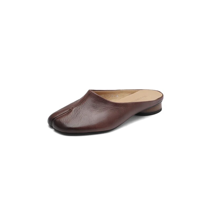Our Split Toe Leather Mules stand out for their unique blend of style and comfort. The genuine leather construction ensures durability while offering a luxurious feel. The low heel design makes them ideal for extended wear, perfect for busy days. With their retro style and split toe feature, these loafers are not just shoes; they’re a fashion statement.
